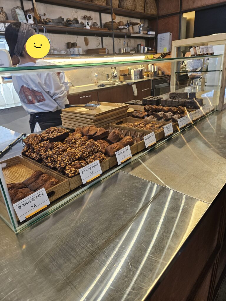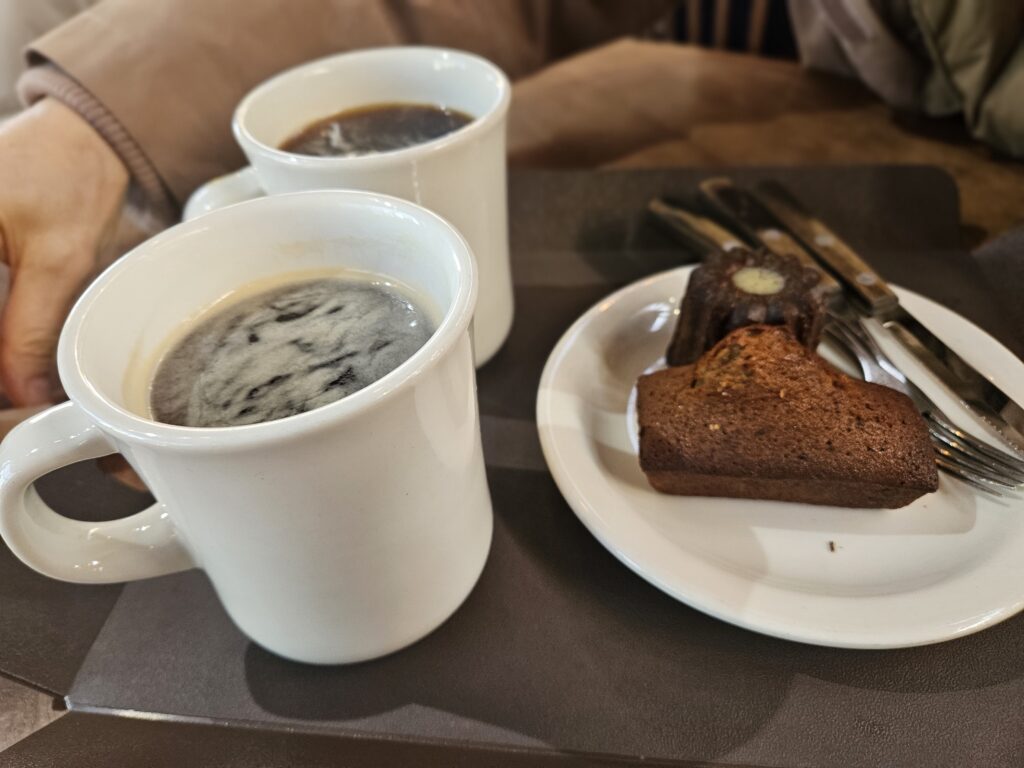 아메리카노와 휘낭시에, 까눌레를 먹으며 친구와 이야기를 나눴습니다. 연인들이 와서 함께 셀카도 찍고 친구들끼리도 와서 먹고 가요. 주차때문인지 아니면 이곳에 들렀다는데 의미를 두는지 테이블 회전이 빠른 편입니다. 커피 다 마시면 바로 일어서서 나가는 편.