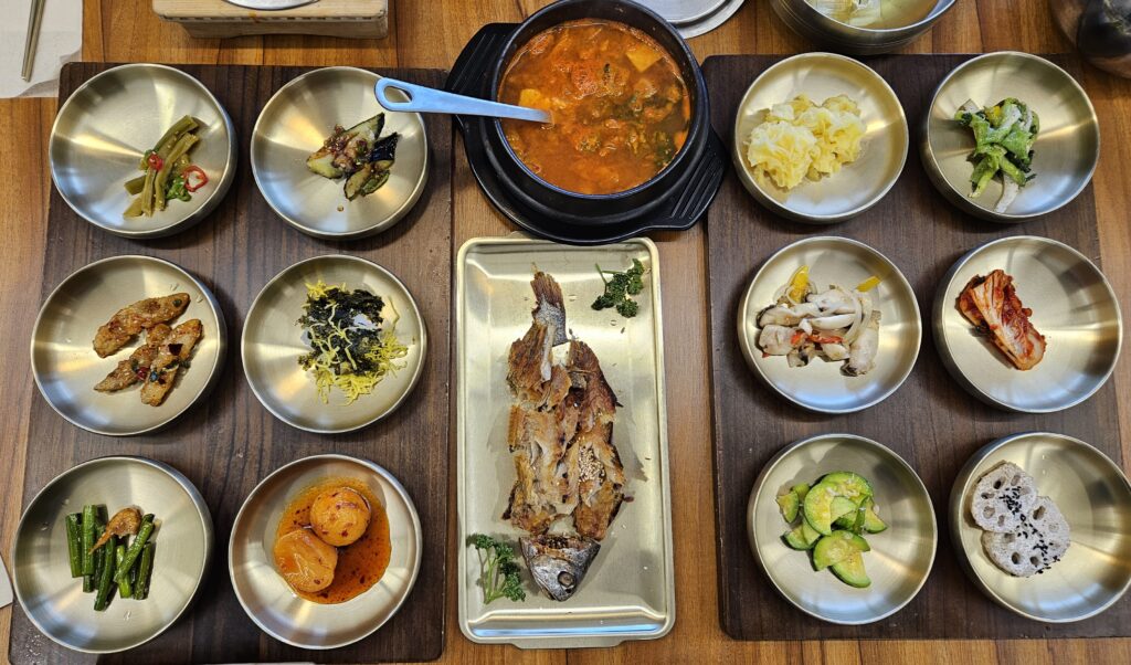 또 하나는 셀프반찬코너에 가서 추가로 가져올 수 있는 샐러드와 상에 나오지 않은 반찬 및 더 먹고 싶은 반찬도 잘 챙겨오면 좋습니다. 자유롭게 리필해 먹을 수 있어서 맛있는 반찬을 계속 먹을 수 있는 장점이 있습니다. 반찬은 짜지 않아 좋았고 단맛이 나는 반찬은 좀 있었습니다. 배불리 잘 먹고 왔습니다.(2026.2.)