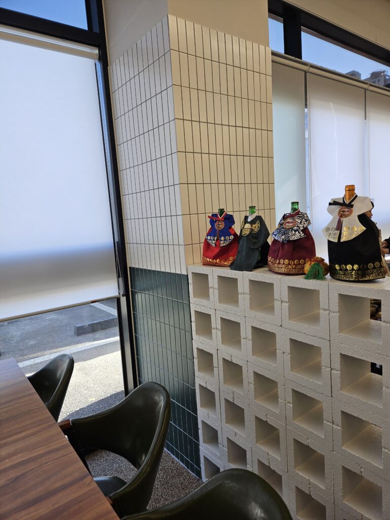 나오는 길에 술병들이 한복을 입고 있어서 찍어 보았습니다.